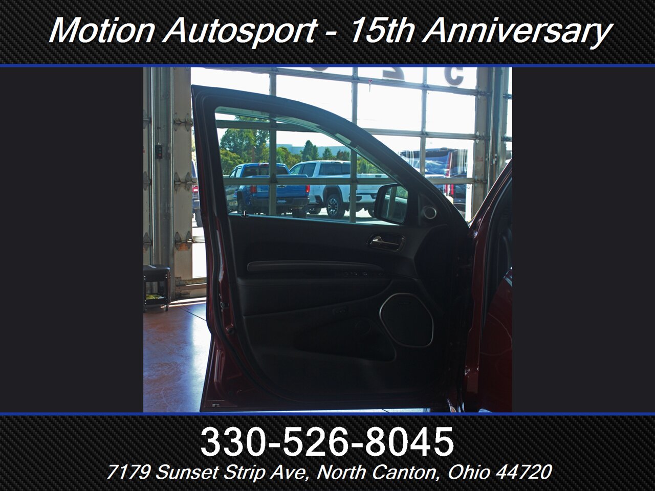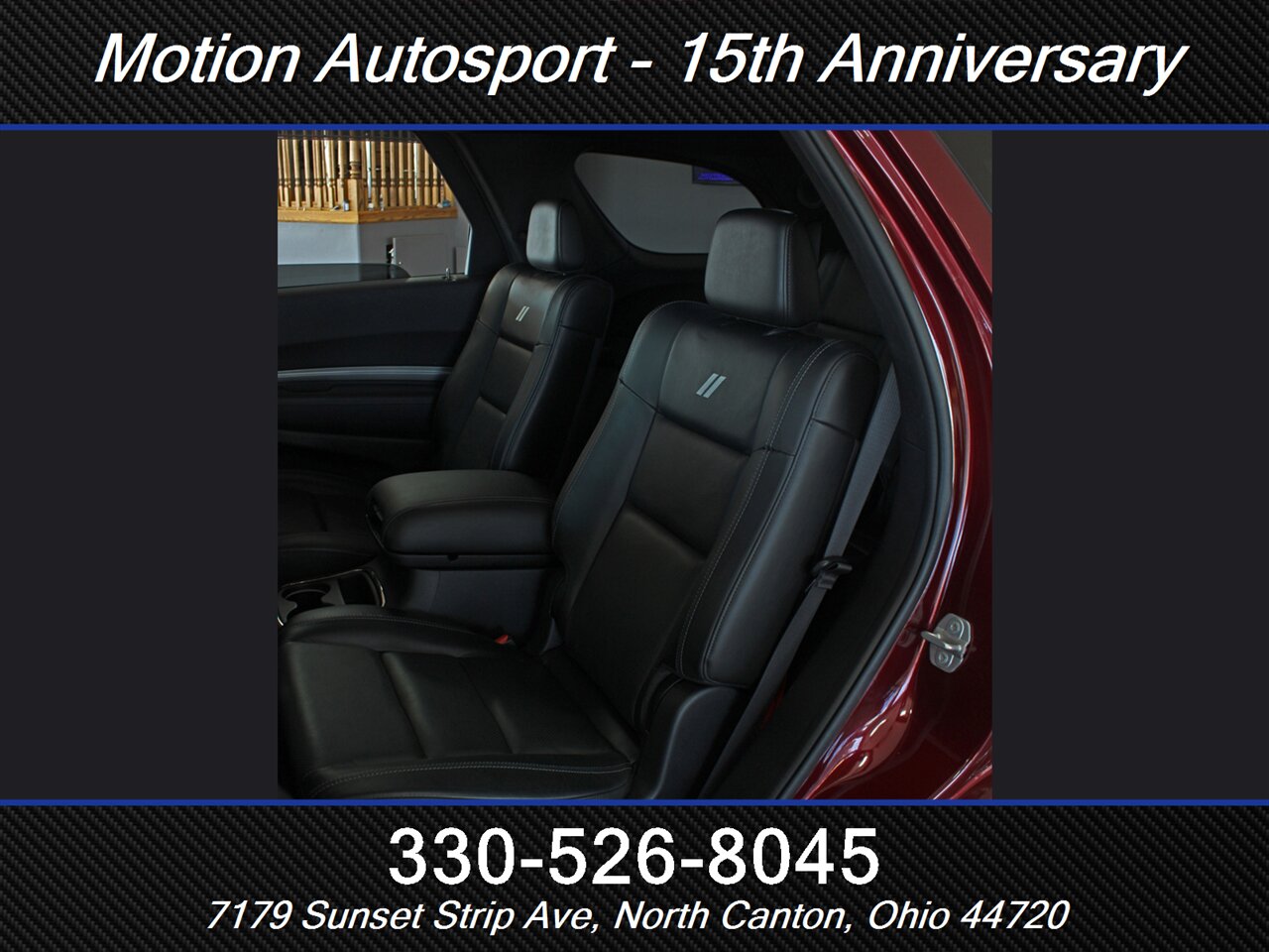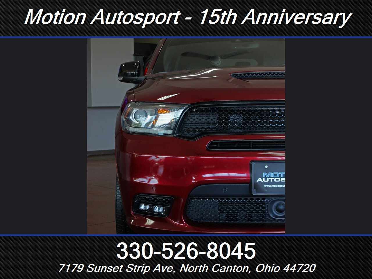 ONE OF THE HOTTEST COLOR COMBOS ON THE FACE OF THE PLANET! Octane Red Pearl! Only 47,000 very well kept miles on this one of a kind R/T Durango! Fully loaded with the big dog 5.7 Hemi V8, Black Top package, Heated and Cooled seats, Moon roof, Harman Kardon 19 speaker sound system, (Have you read enough or should I keep going!?)... OK, here goes! 2nd row Heated captains with the console, Front and rear park assist, Technology group(adaptive cruise, lane departure, forward collision) Blind Spot and Cross Path detection, third row, navigation, fresh service and an impeccable Carfax! Ask us about our spectacular financing and extended service contracts. We take trades and ship vehicles nationwide. Visit www.motionautosport.com for 60 detailed photos. Internet price is a finance price only. Call Brandon for more details at 330-526-8045