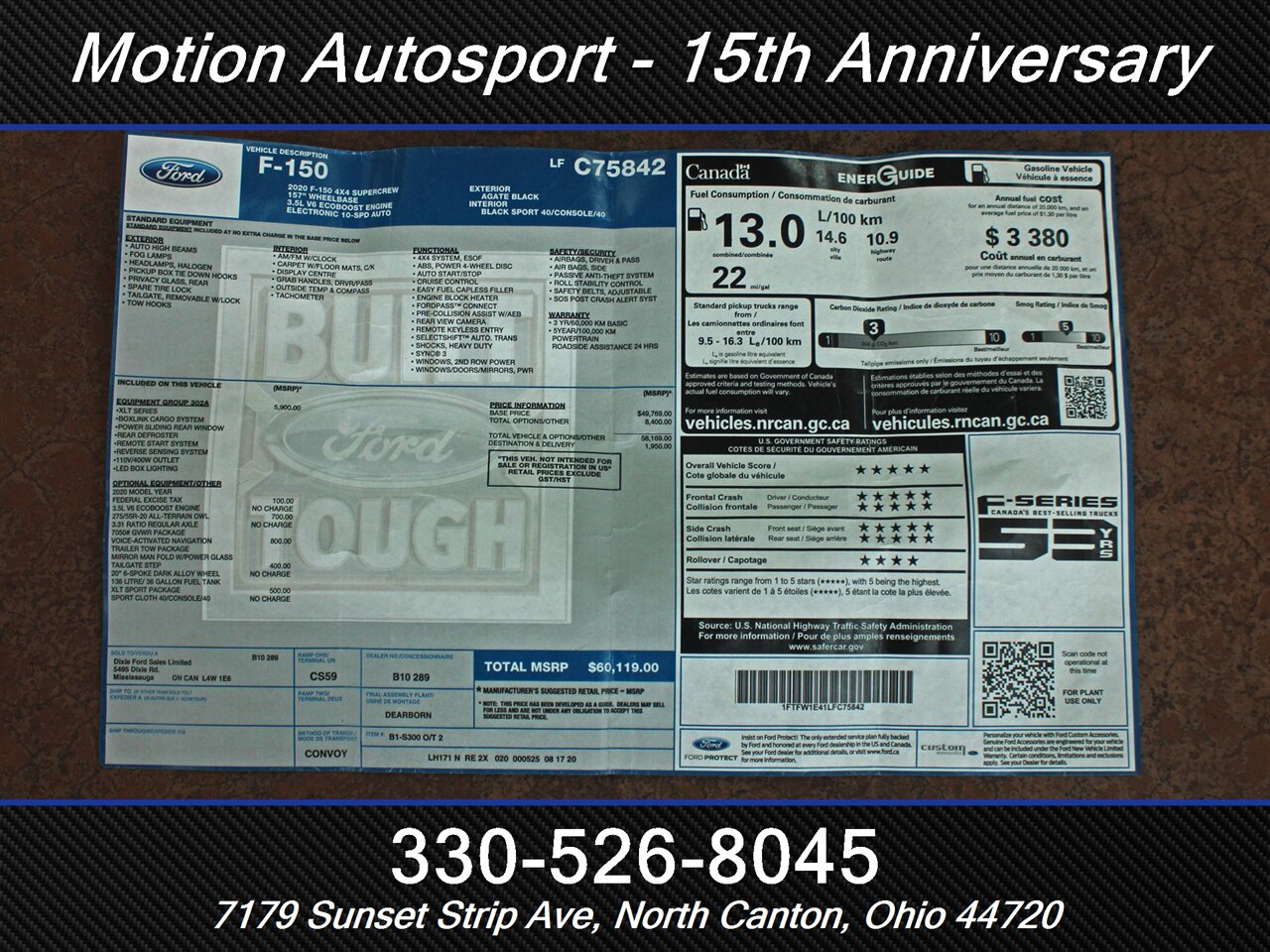 This XLT Sport arrives as the factory intended, loaded with the comfort, convenience, and safety features that have made the F-150 an industry icon. Highlights of the factory equipment include:
