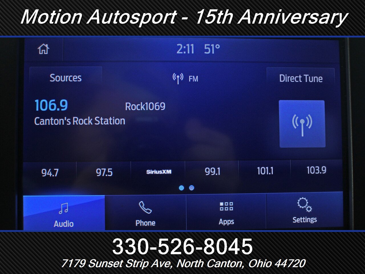 - Radio: AM/FM, touch screen display, voice operated