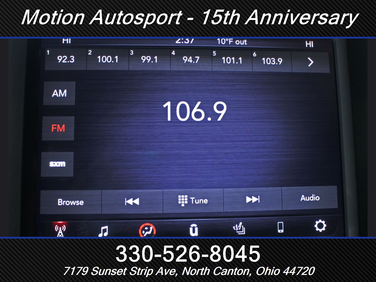 - Radio: AM/FM, touch screen display, voice operated