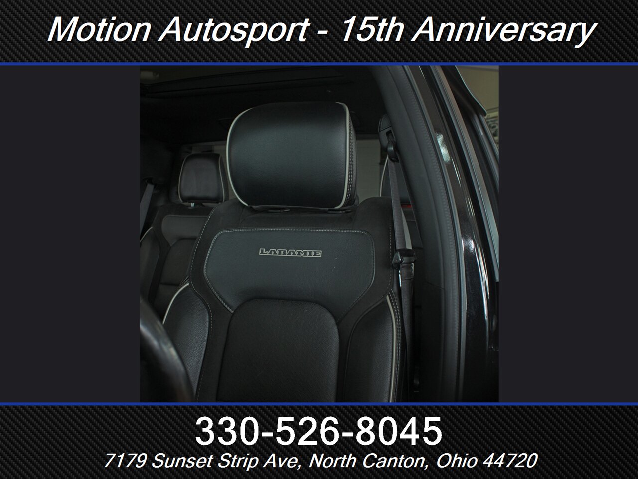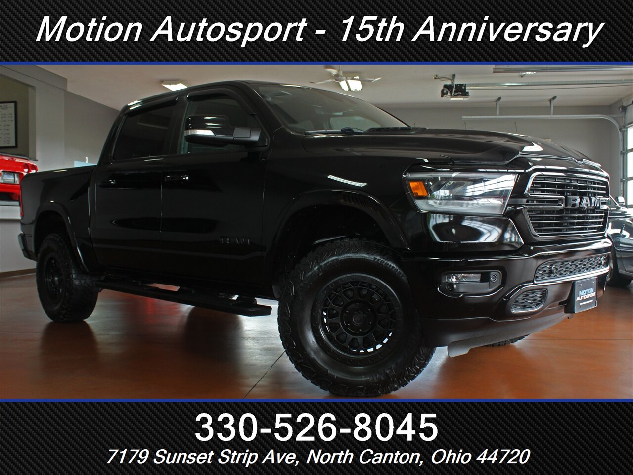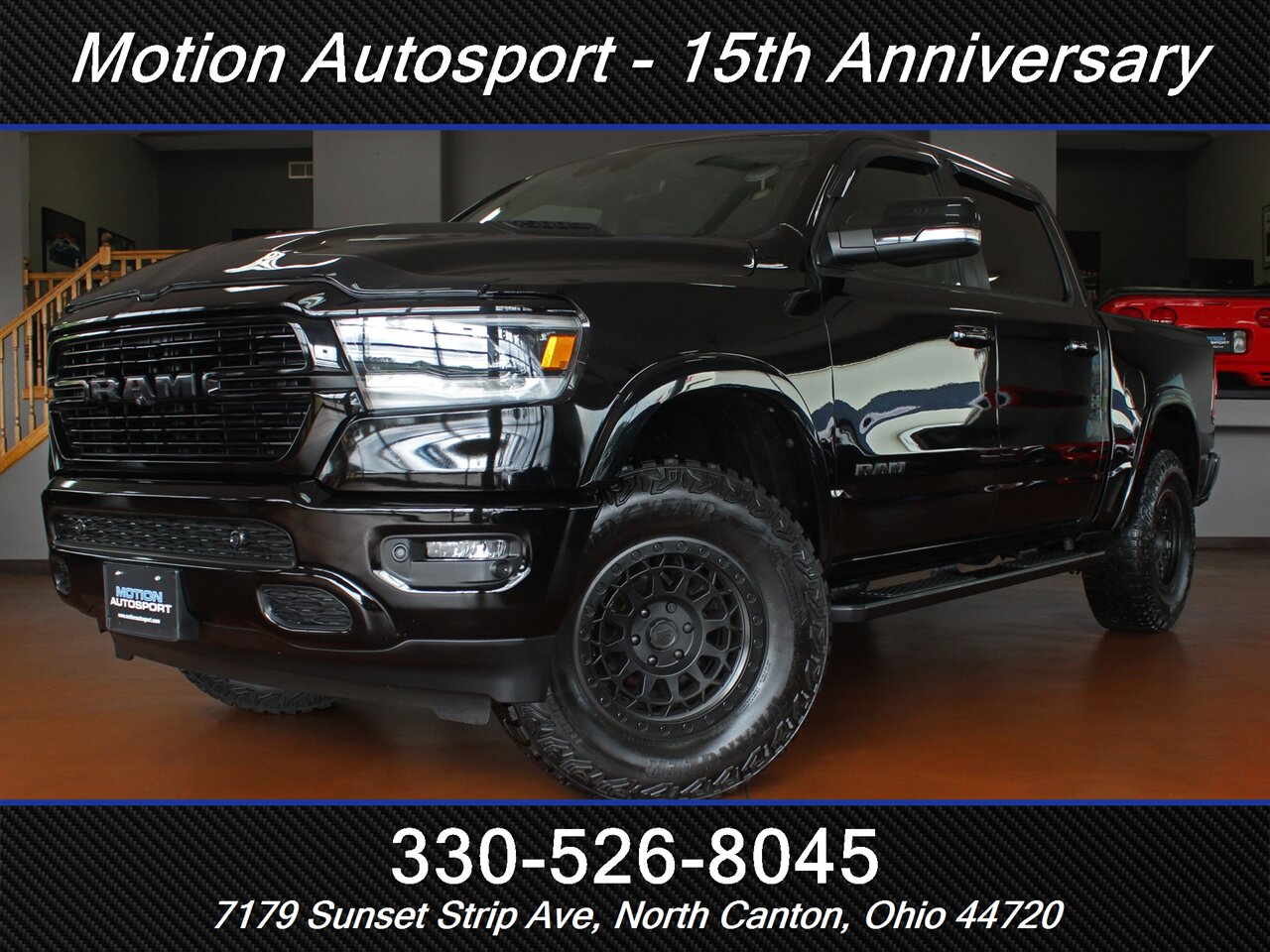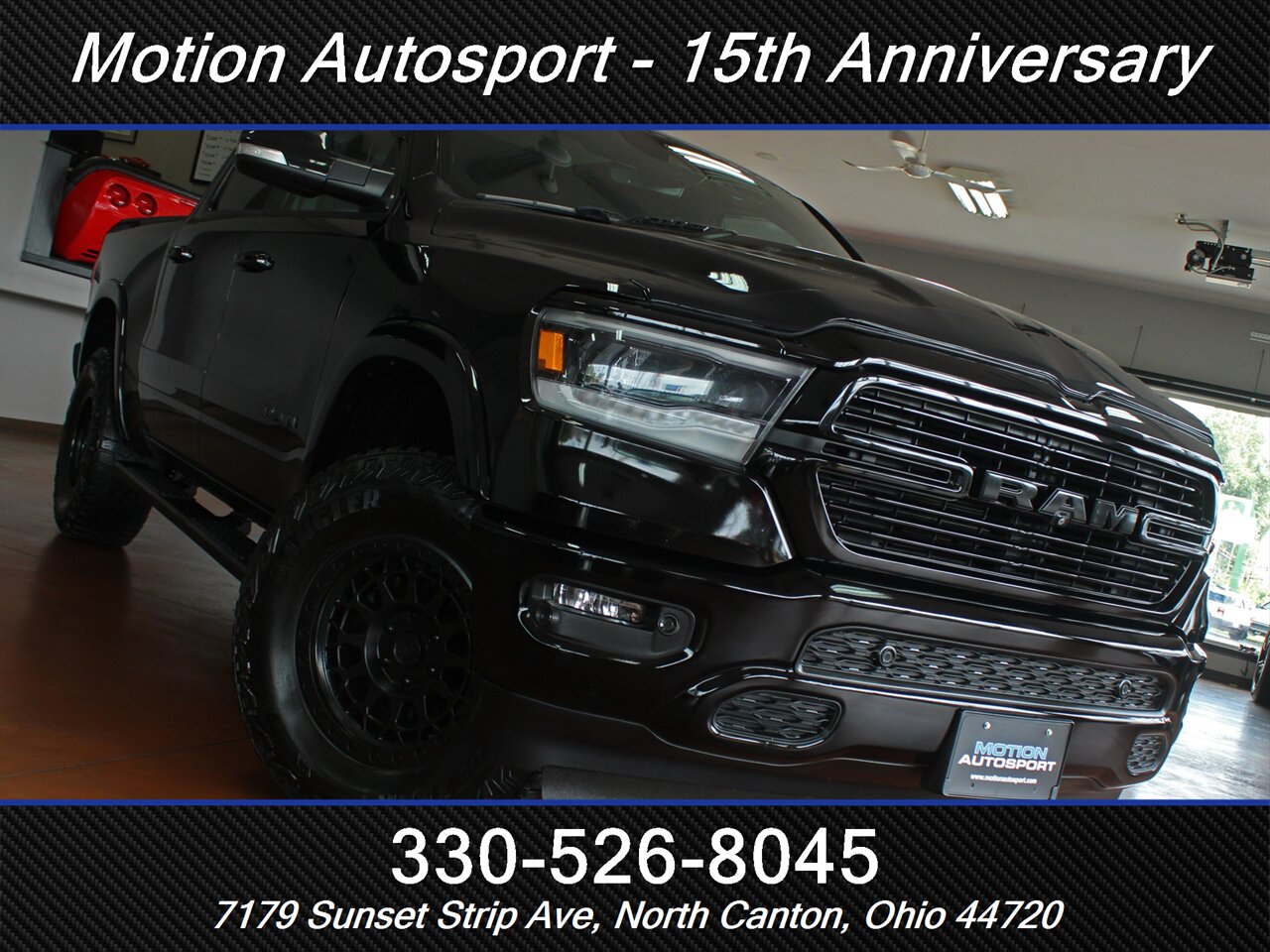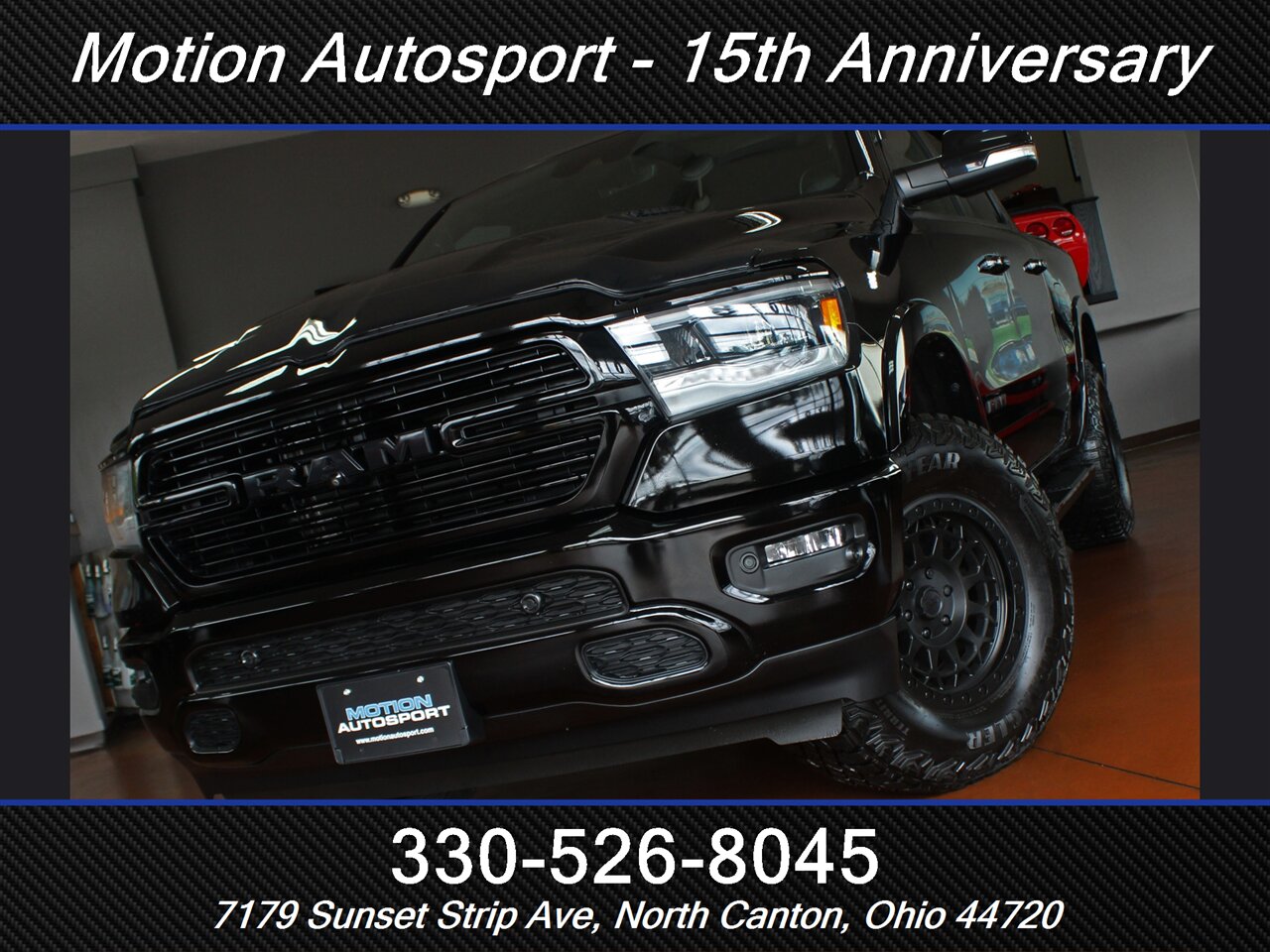 HUGE MSRP ON THIS ONE! Loaded with massive option! Stunning Laramie with the black top package, level 2 package, custom lift kit, custom wheels, 12 inch screen, hot and cold leather, navigation, panoramic roof, fresh service and detail and a clean Carfax! THIS RAM IS HOT! Ask us about our spectacular financing and extended service contracts. We take trades and ship vehicles nationwide. Visit www.motionautosport.com for 60 detailed photos. Internet price is a finance price only. Visit our website for full pricing details. Call Mike for more details at 330-526-8045