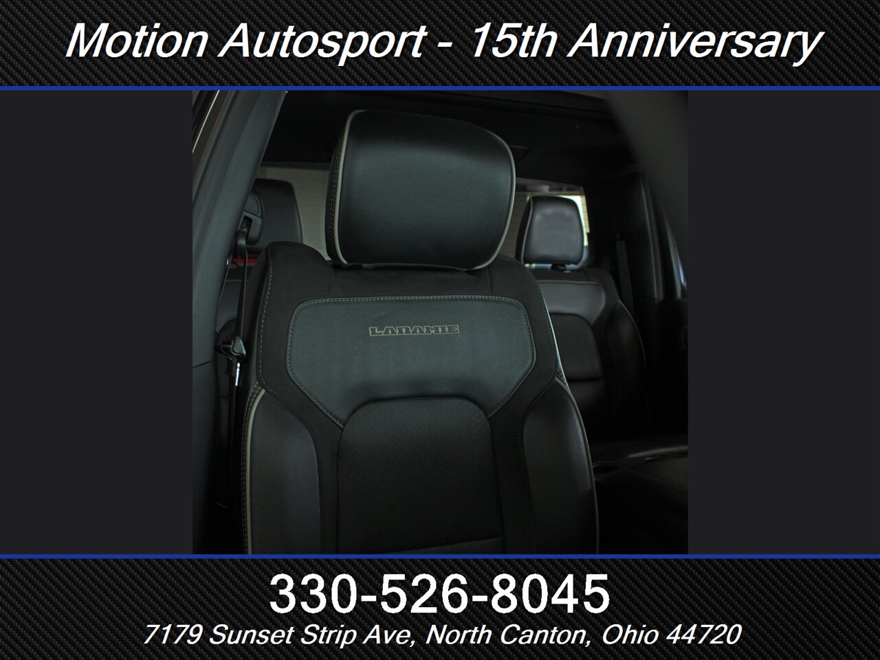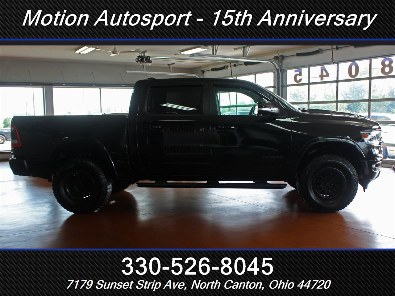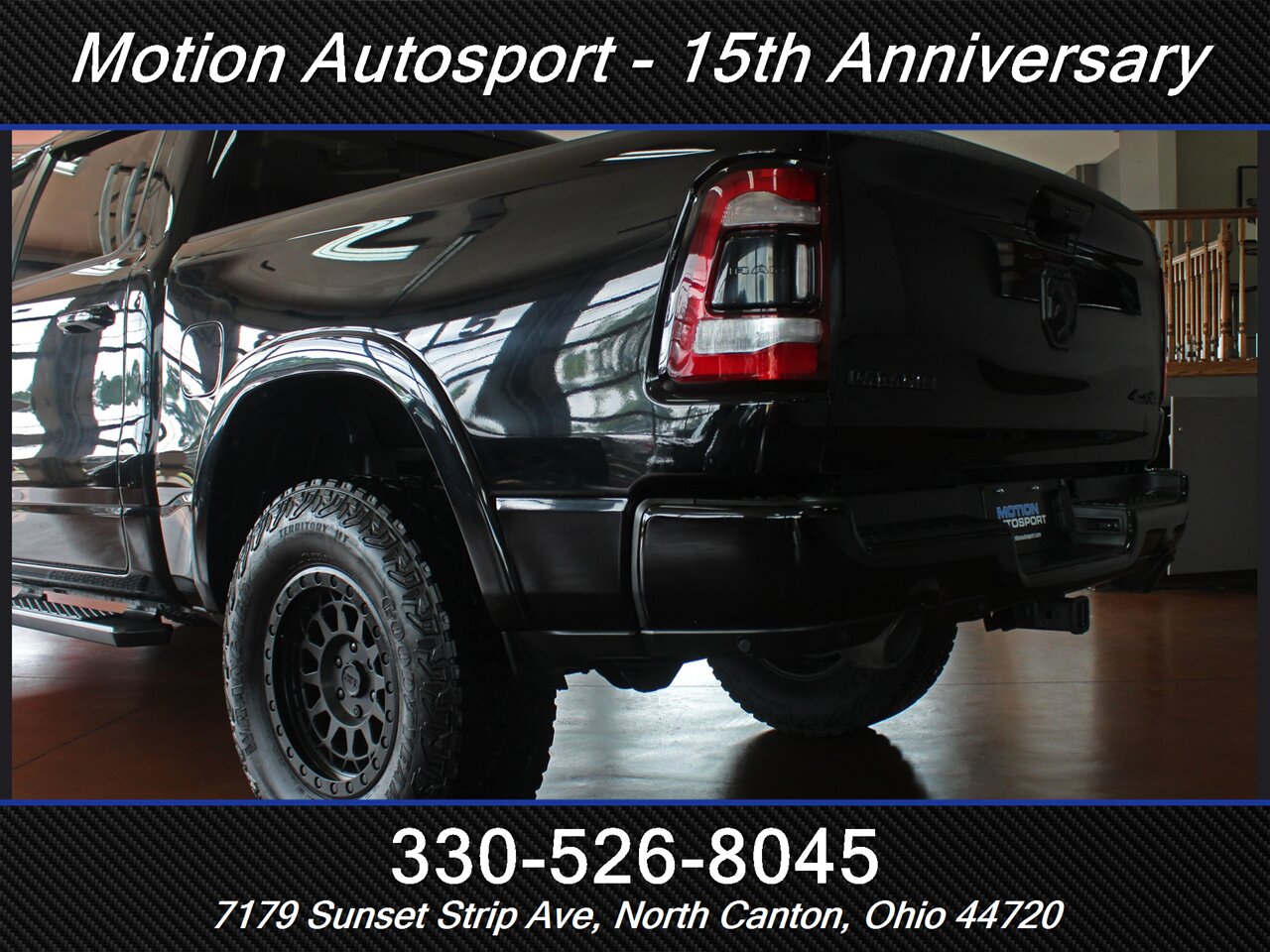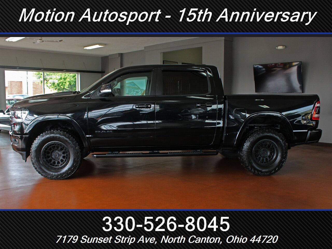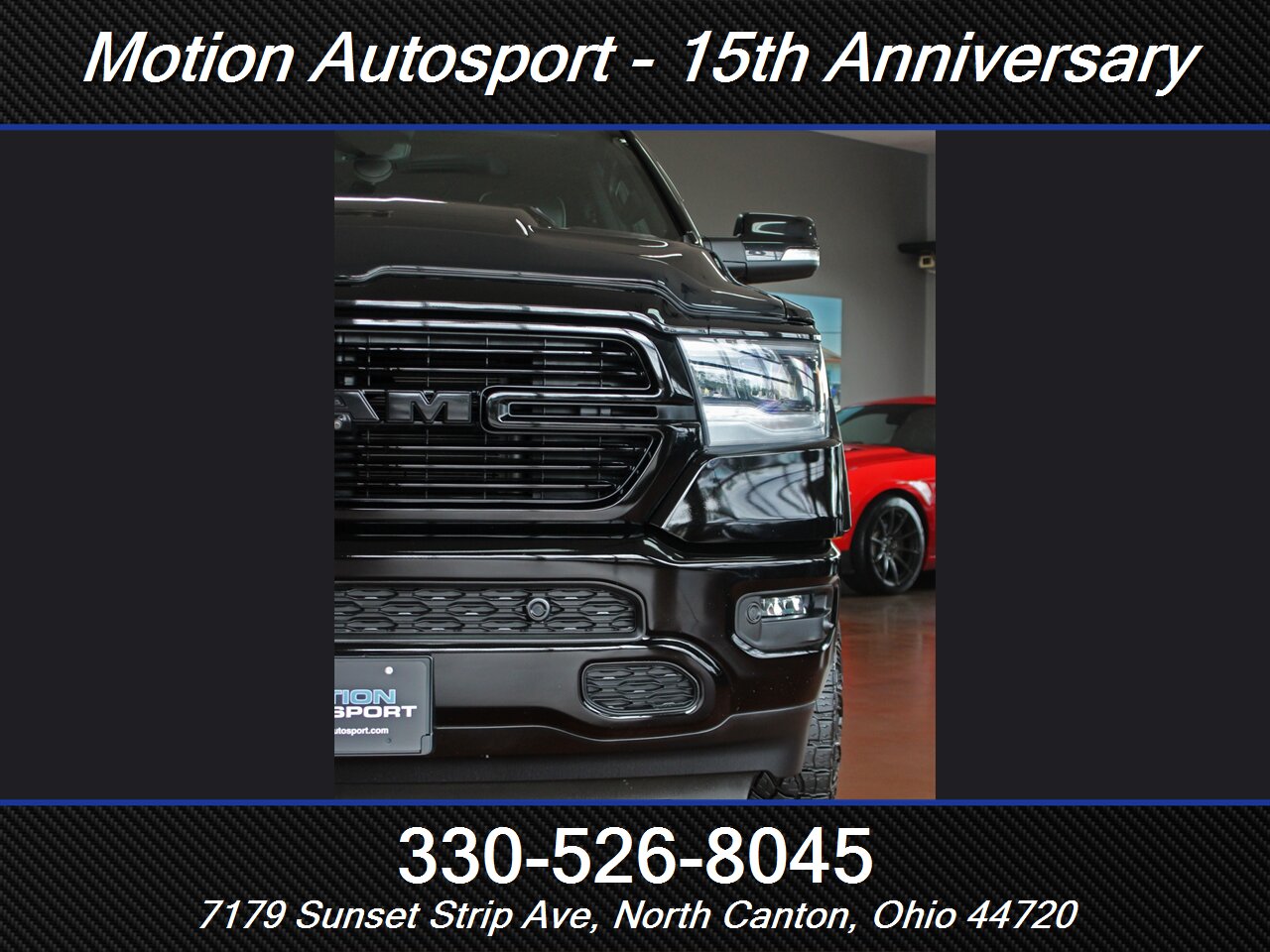 HUGE MSRP ON THIS ONE! Loaded with massive option! Stunning Laramie with the black top package, level 2 package, custom lift kit, custom wheels, 12 inch screen, hot and cold leather, navigation, panoramic roof, fresh service and detail and a clean Carfax! THIS RAM IS HOT! Ask us about our spectacular financing and extended service contracts. We take trades and ship vehicles nationwide. Visit www.motionautosport.com for 60 detailed photos. Internet price is a finance price only. Visit our website for full pricing details. Call Mike for more details at 330-526-8045