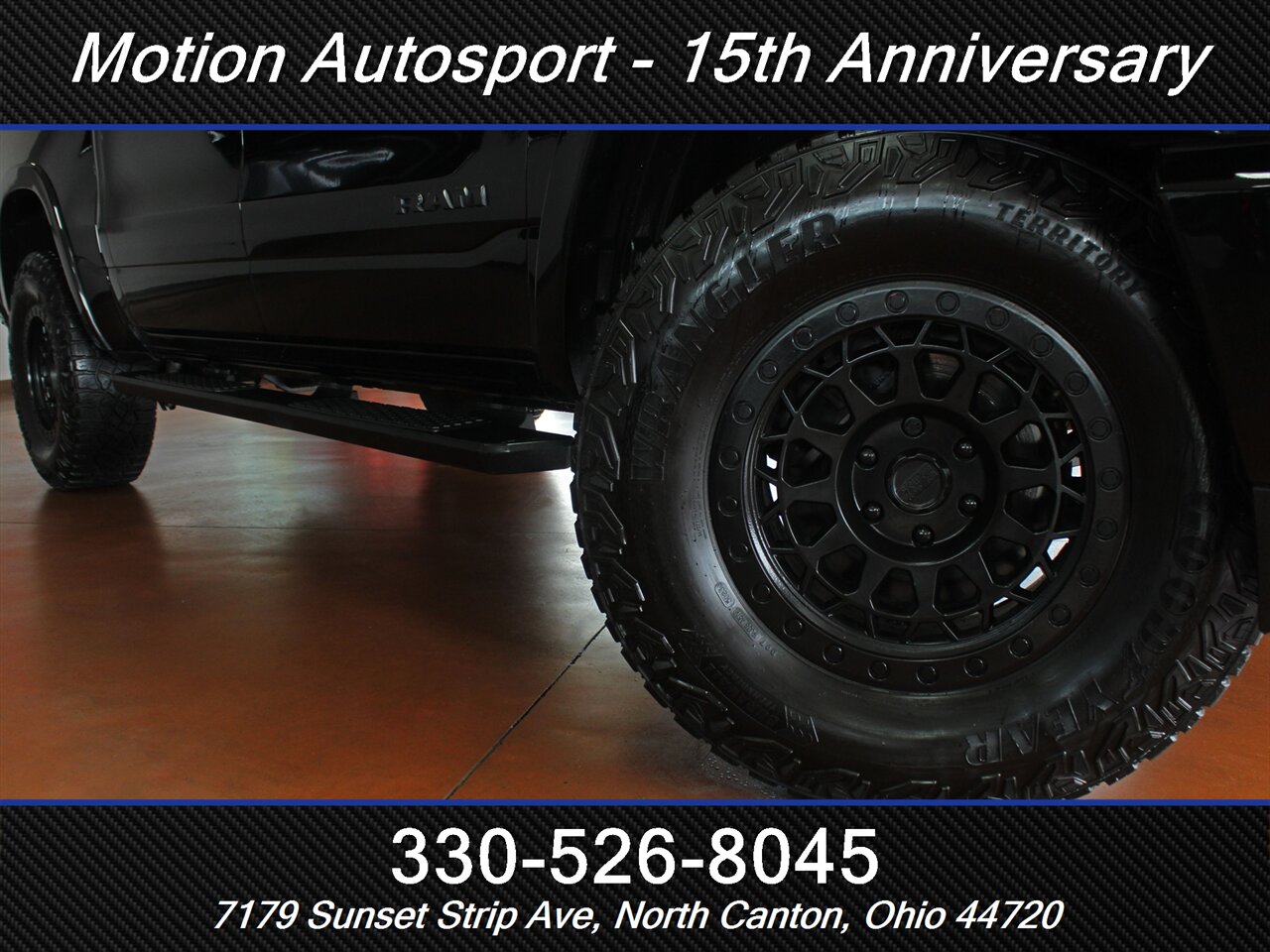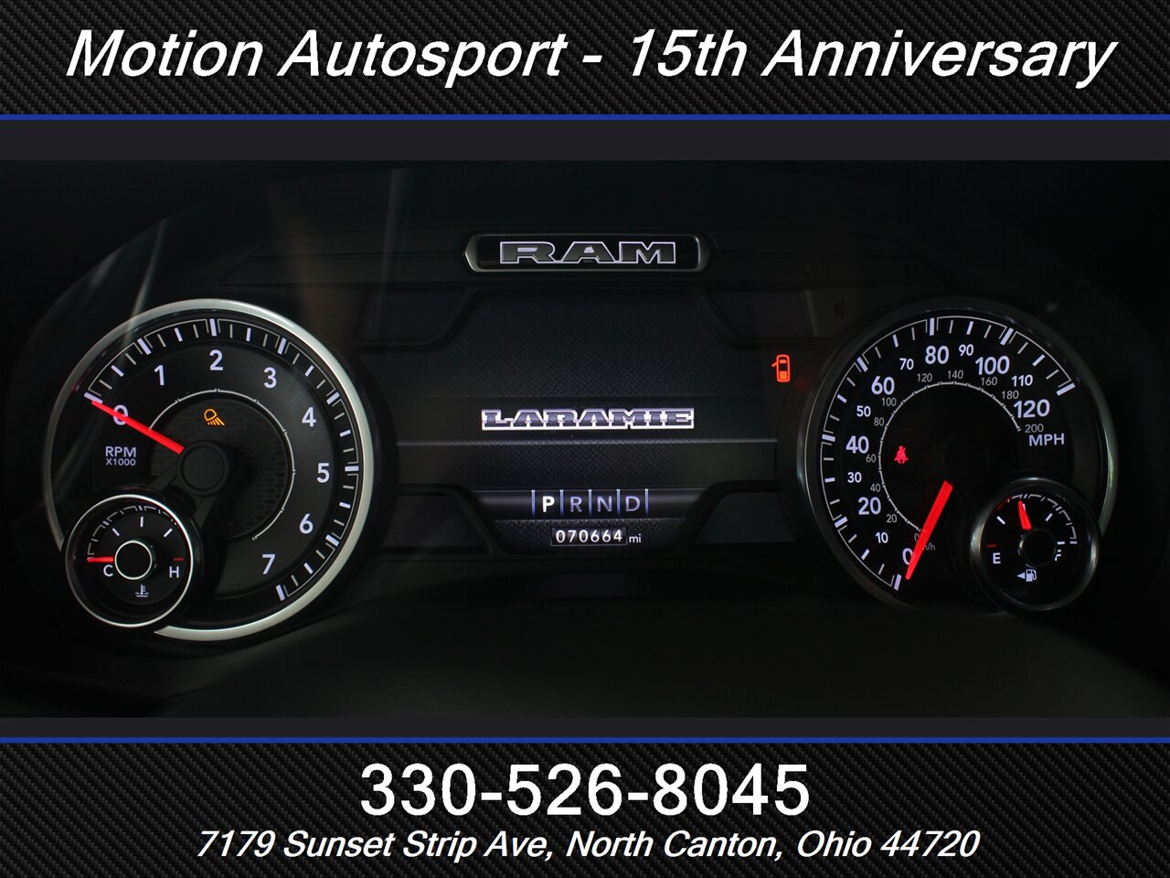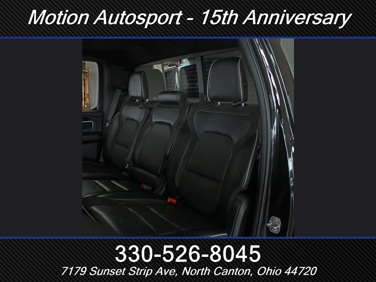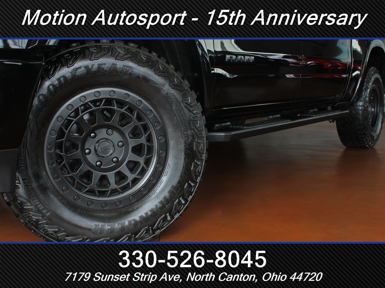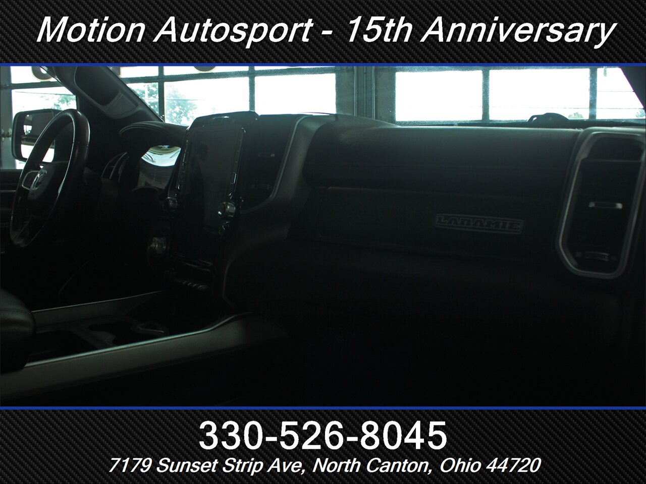 HUGE MSRP ON THIS ONE! Loaded with massive option! Stunning Laramie with the black top package, level 2 package, custom lift kit, custom wheels, 12 inch screen, hot and cold leather, navigation, panoramic roof, fresh service and detail and a clean Carfax! THIS RAM IS HOT! Ask us about our spectacular financing and extended service contracts. We take trades and ship vehicles nationwide. Visit www.motionautosport.com for 60 detailed photos. Internet price is a finance price only. Visit our website for full pricing details. Call Mike for more details at 330-526-8045