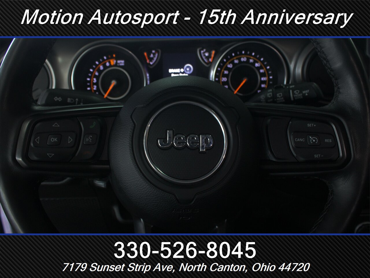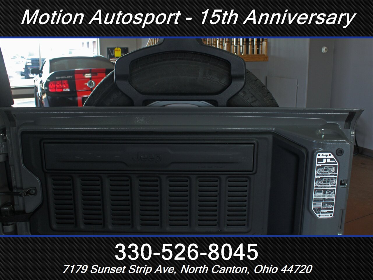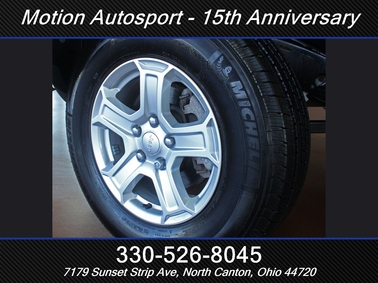- Rugged full-size spare mounted on the swing-out tailgate because Jeeps don’t do “stranded.”