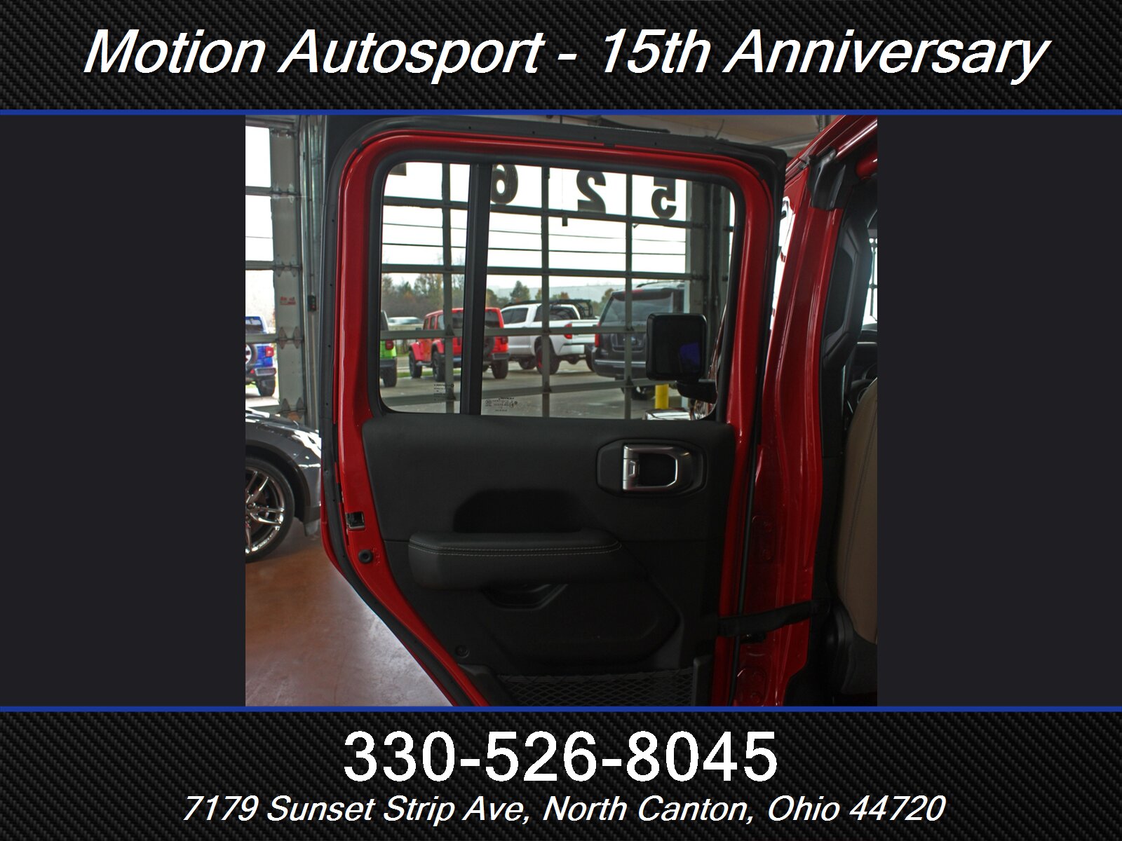 RED WITH TAN LEATHER! Stunning condition with only 63,000 very well-kept miles! Huge options such as factory hard top, Stunning Firecracker red paint, heritage tan leather alloy wheels, navigation, heated leather, navigation, fresh service and detail and an impeccable Carfax! IMPOSSIBLE UNIT TO GET IN THE SUMMER TIME SO DO NOT WAIT! Ask us about our spectacular financing and extended service contracts. Internet price is dealer finance only. We take trades and ship vehicles nationwide. Visit www.motionautosport.com for 60 detailed photos. Call jeff for more details at 330-526-8045
