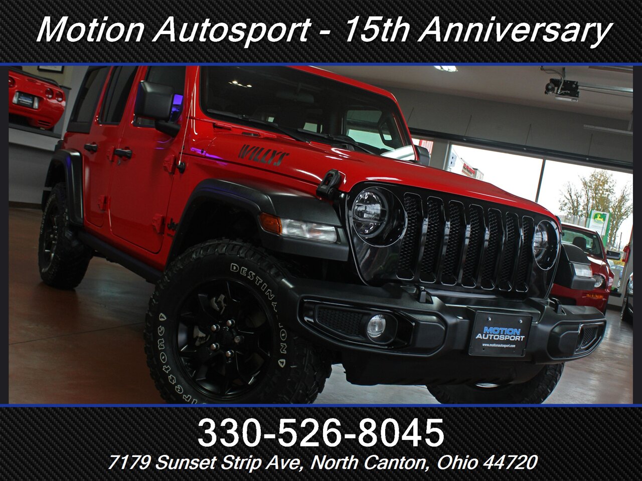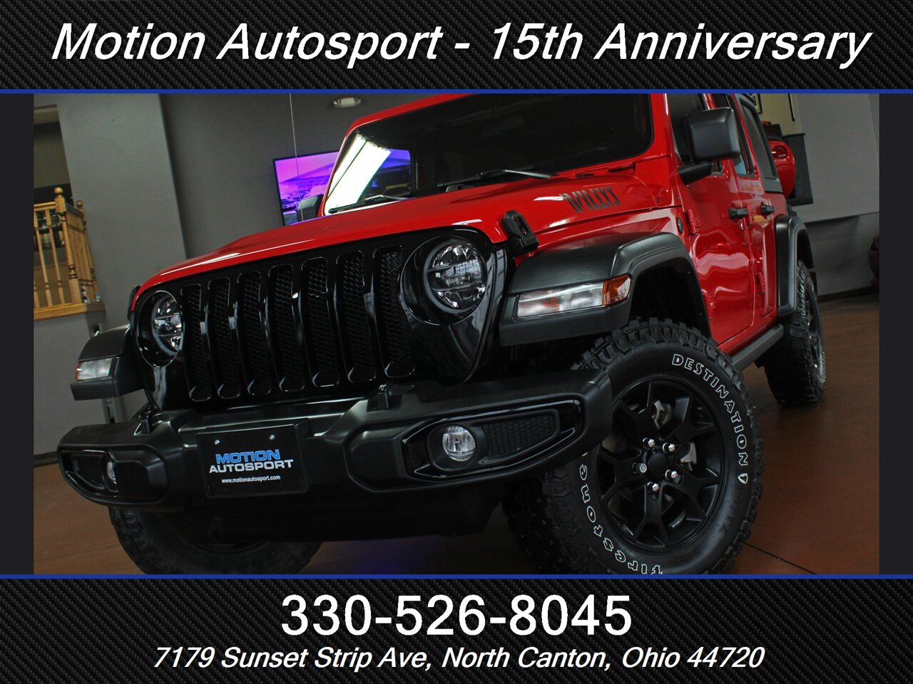 RARE UNIT...DONT LOSE IT! Stunning Firecracker red Willys with the hard top! Only 56,000 extremely well cared for miles! Very clean Jeep inside and out that you will be proud to own! IMPOSSIBLE TO FIND IN THE SPRING! Ask us about our spectacular financing and extended service contracts. CHEAP PRICE ON THIS ONE!~ Internet price is dealer finance only. We take trades and ship vehicles nationwide. Visit www.motionautosport.com for 60 detailed photos. Call Ken for more details at 330-526-8045
