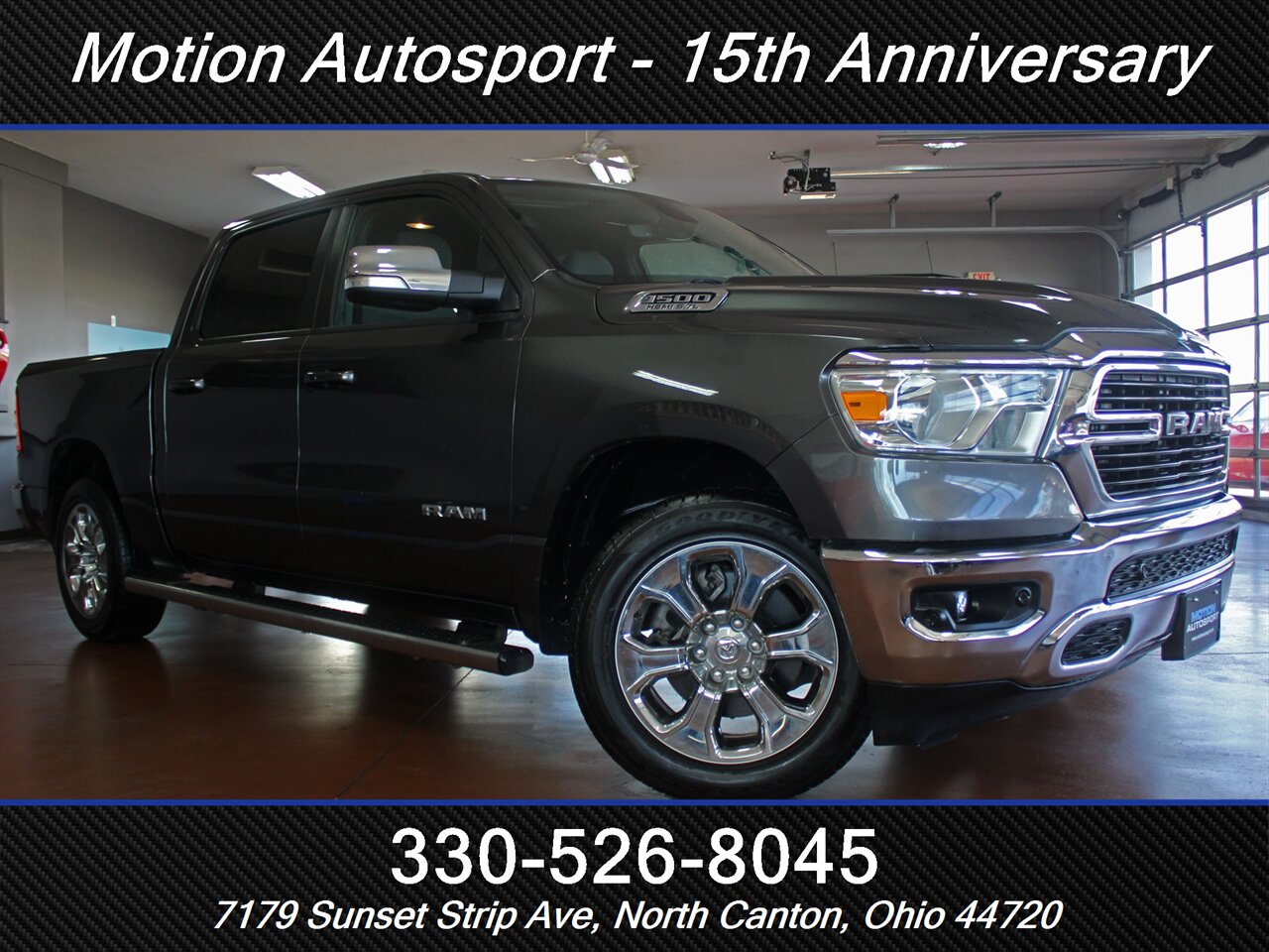 Prepare to command the road with the majestic presence of this 2021 RAM 1500 Big Horn 4x4 — a truck that blends brute HEMI power with refined factory craftsmanship. Cloaked in Granite Crystal Metallic Clear Coat and dressed in a striking Black interior, this Big Horn is a statement of capability and prestige. Under the hood roars the legendary HEMI 5.7L V8, delivering an authoritative 395 hp and 410 lb-ft of torque mated to a smooth-shifting 8-speed automatic transmission and a rugged 4x4 drivetrain designed to conquer highways, back roads, and the unexpected.