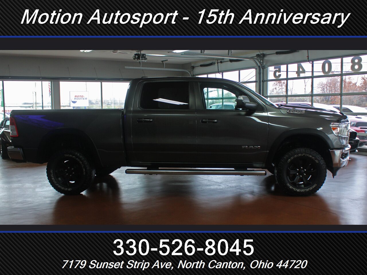 HOT HEMI RAM CREW! What a truck and what a price! ONE OWNER! Loaded up Big Horn! Lifted up and Ready to roll! The 5.7 Hemi to go along with it! Heated seats, heated steering wheel, remote start, lift kit, long bed option, front and rear park assist, Fresh service and detail and an impeccable ONE OWNER Carfax! Ask us about our spectacular financing and extended service contracts. We take trades and ship vehicles nationwide. Visit www.motionautosport.com for 60 detailed photos. Call Brandon for more details at 330-526-8045.
