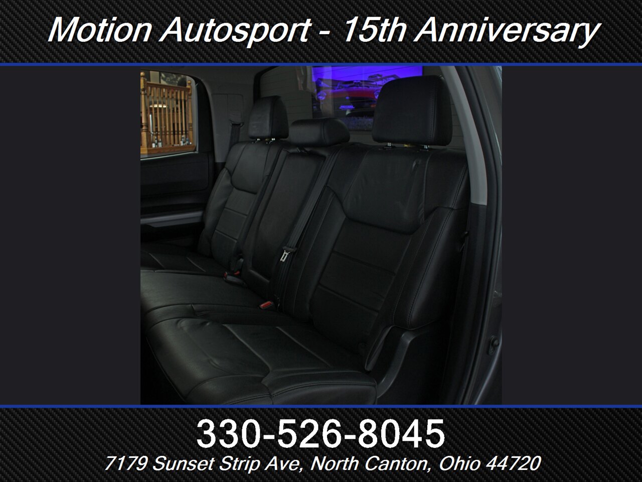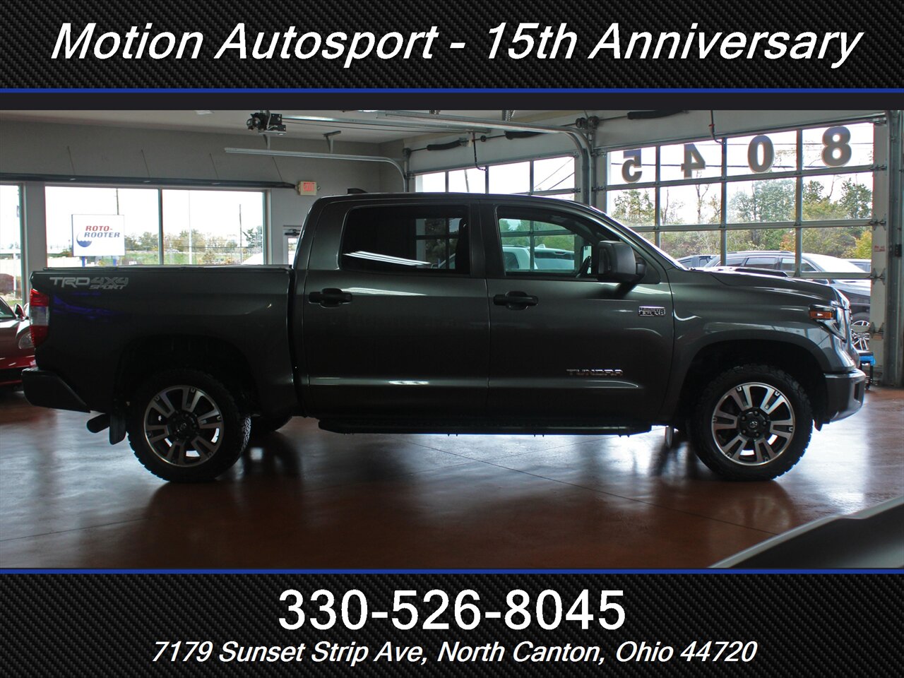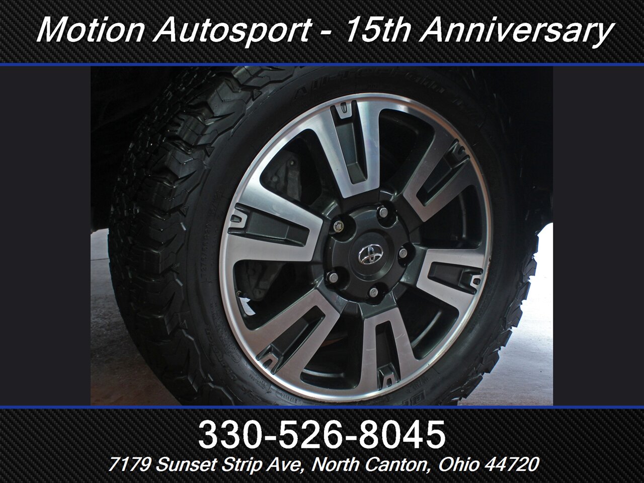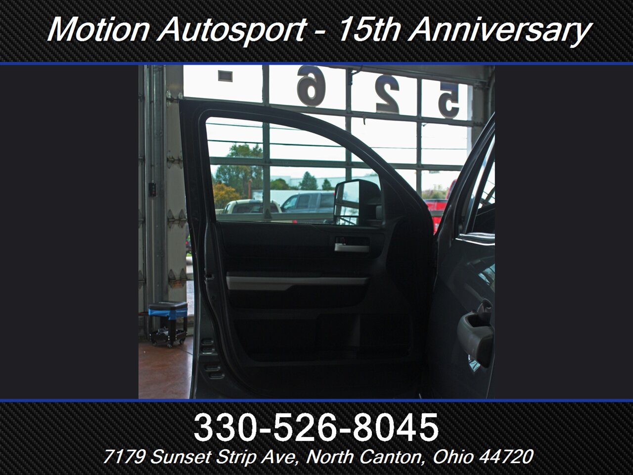 Try and find this one! Wow! TALK ABOUT HARD LOADED! ONLY 44,000 MILES! Stunning Magnetic Gray Tundra Crew Max! Huge options such as the full SR5 package, TRD Sport package, Moon roof, heated leather, navigation, fresh service and detail and an impeccable Carfax! THIS IS A HARD TO FIND TRUCK WITH THIS GEAR! Ask us about our spectacular financing and extended service contracts. We take trades and ship vehicles nationwide. Visit www.motionautosport.com for 60 detailed photos. Call Mike for more details at 330-526-8045. Internet price is a finance price only. Visit our website for full ad details.