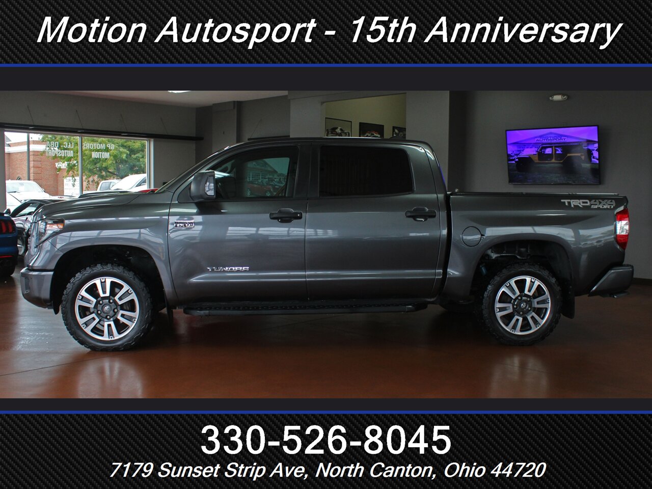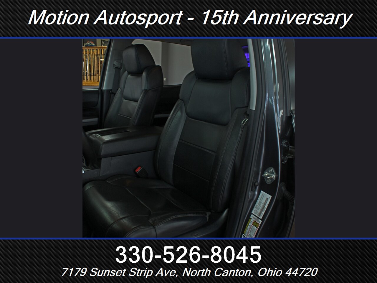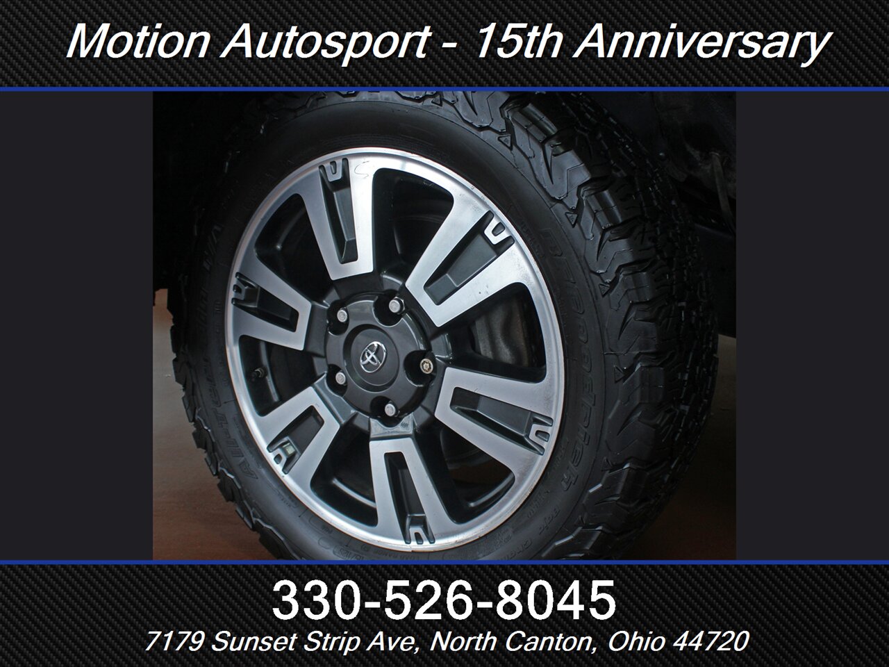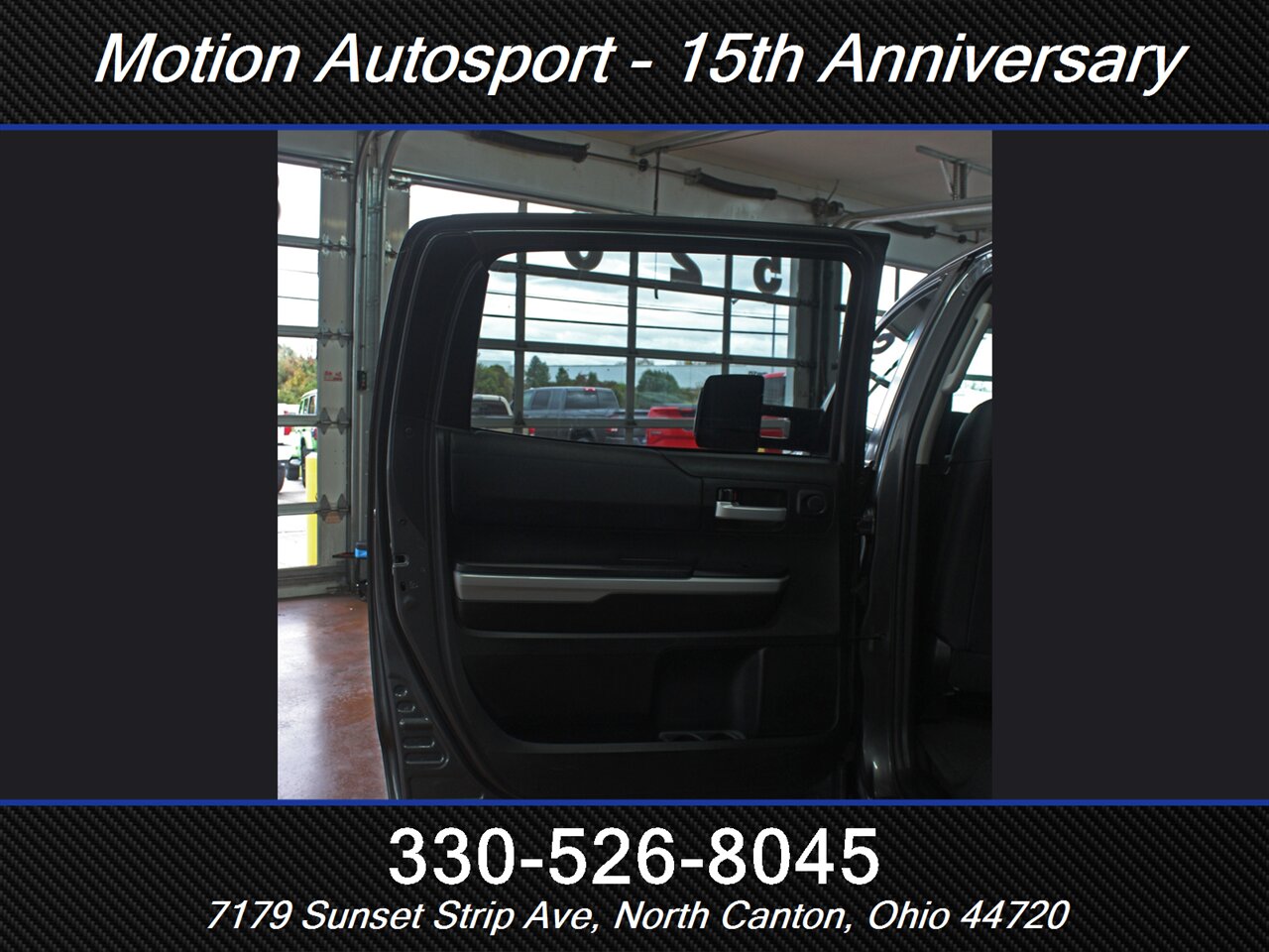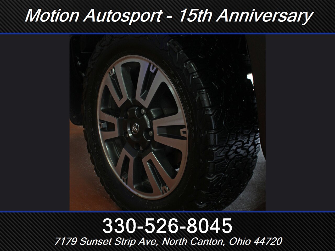 Try and find this one! Wow! TALK ABOUT HARD LOADED! ONLY 44,000 MILES! Stunning Magnetic Gray Tundra Crew Max! Huge options such as the full SR5 package, TRD Sport package, Moon roof, heated leather, navigation, fresh service and detail and an impeccable Carfax! THIS IS A HARD TO FIND TRUCK WITH THIS GEAR! Ask us about our spectacular financing and extended service contracts. We take trades and ship vehicles nationwide. Visit www.motionautosport.com for 60 detailed photos. Call Mike for more details at 330-526-8045. Internet price is a finance price only. Visit our website for full ad details.
