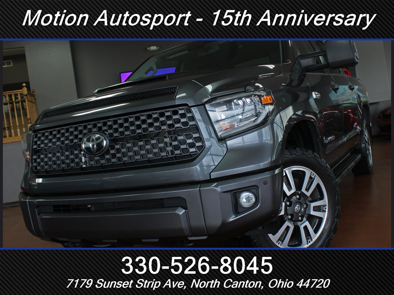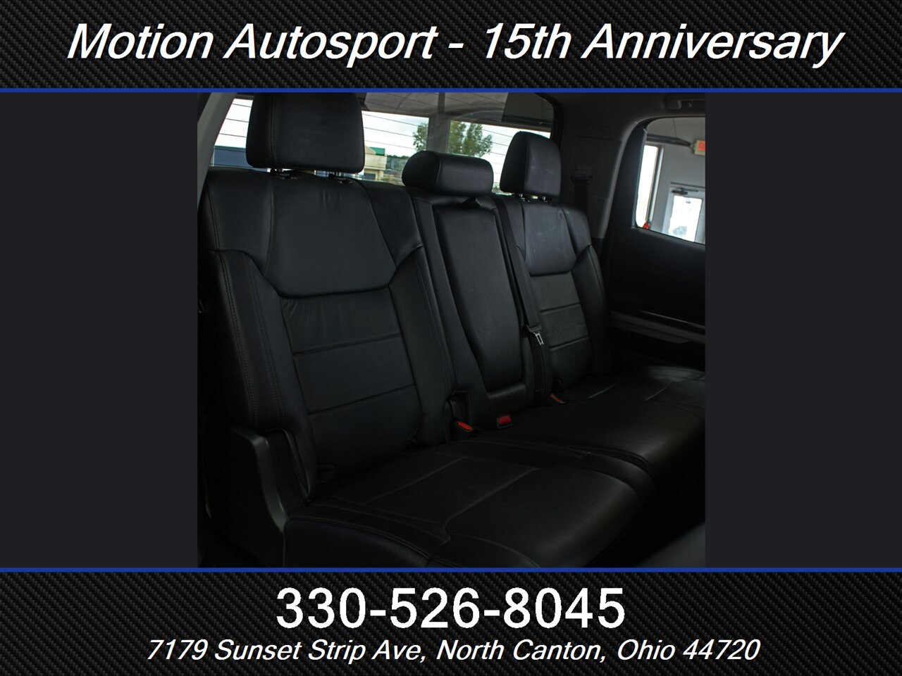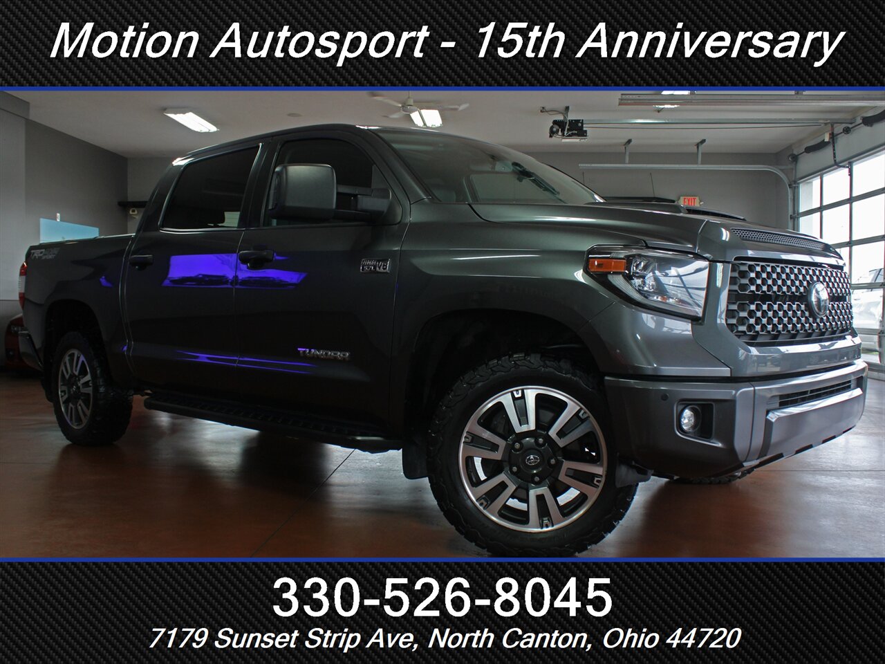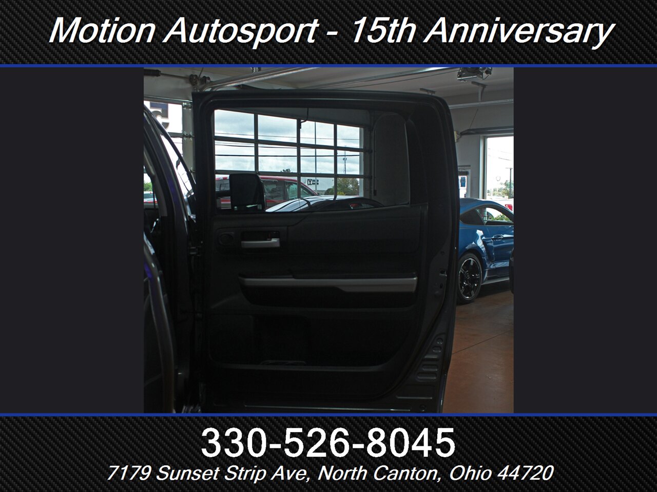 Try and find this one! Wow! TALK ABOUT HARD LOADED! ONLY 44,000 MILES! Stunning Magnetic Gray Tundra Crew Max! Huge options such as the full SR5 package, TRD Sport package, Moon roof, heated leather, navigation, fresh service and detail and an impeccable Carfax! THIS IS A HARD TO FIND TRUCK WITH THIS GEAR! Ask us about our spectacular financing and extended service contracts. We take trades and ship vehicles nationwide. Visit www.motionautosport.com for 60 detailed photos. Call Mike for more details at 330-526-8045. Internet price is a finance price only. Visit our website for full ad details.