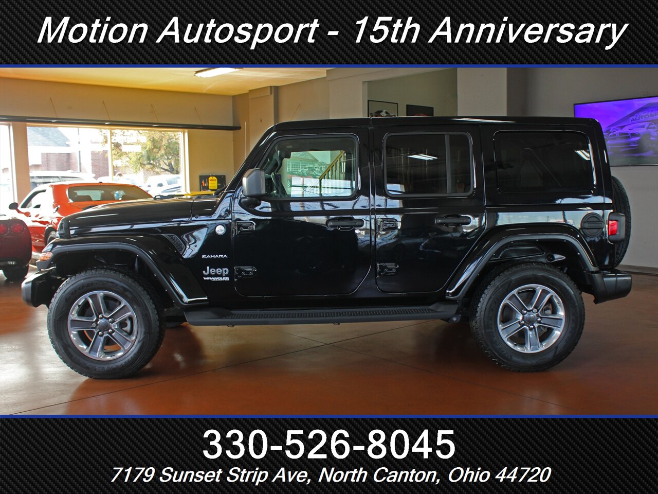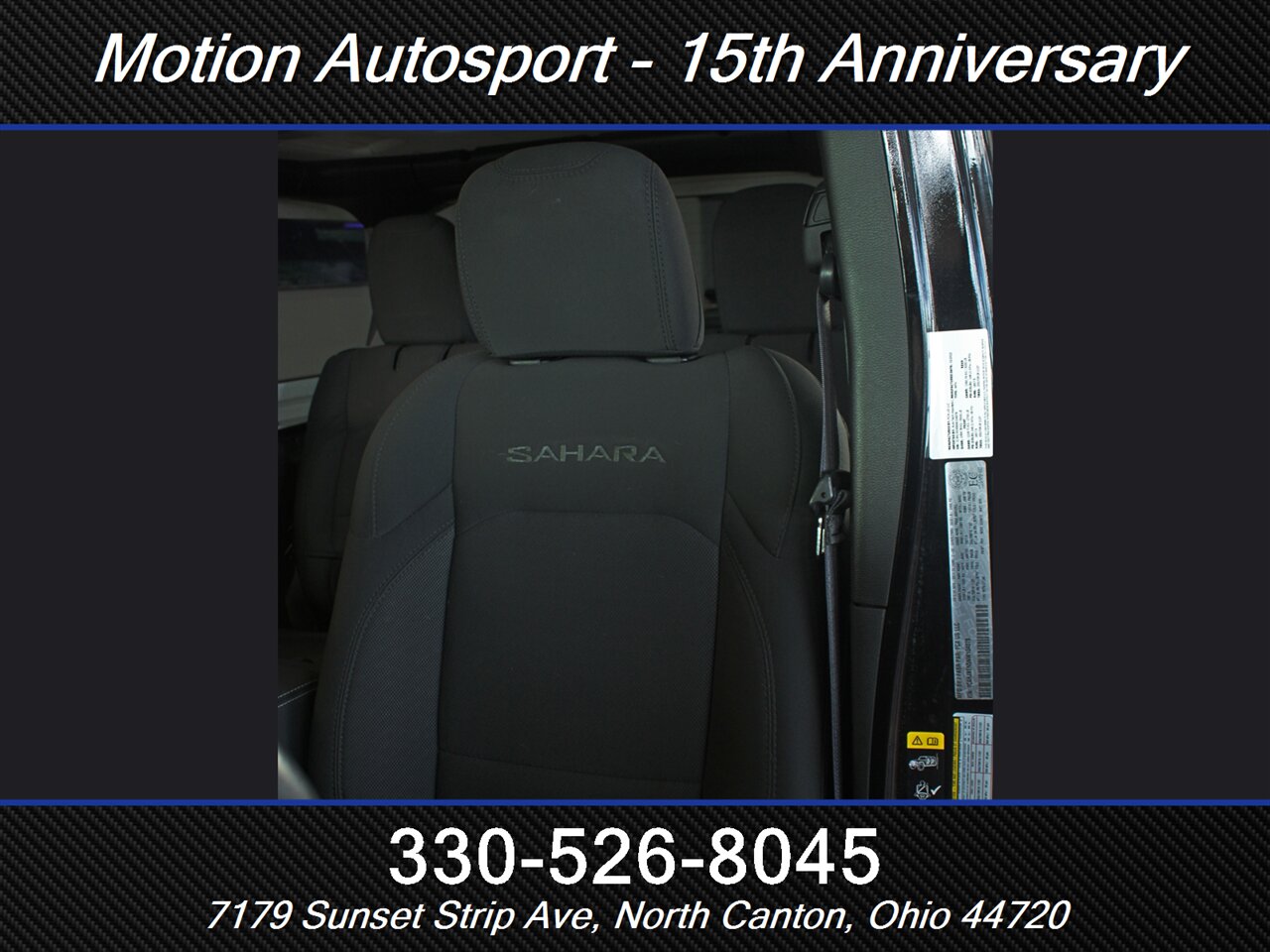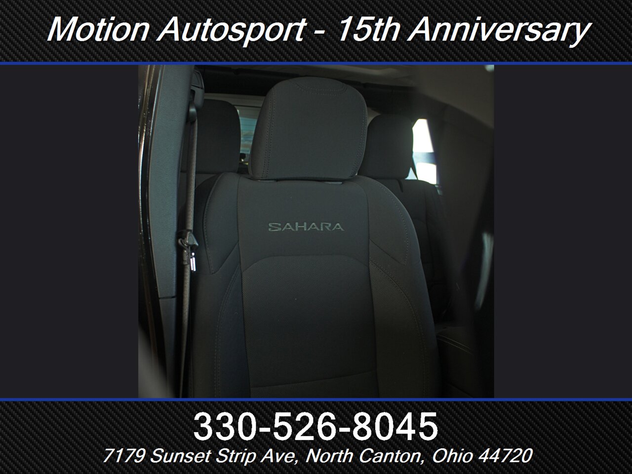 YOU WONT FIND THIS UNIT COME SPRING! Wow! Only 14,000 miles on this stunning, like new Sahara Unlimited! Fully loaded with the painted to match hard top, navigation, heated seats, fresh service and detail and an impeccable Carfax! About as new as you can get without the price tag! Ask us about our spectacular financing and extended service contracts. We take trades and ship vehicles nationwide. Visit www.motionautosport.com for 60 detailed photos. Call Jeff for more details at 330-526-8045 Internet price is a finance price only Visit our website for full pricing details
