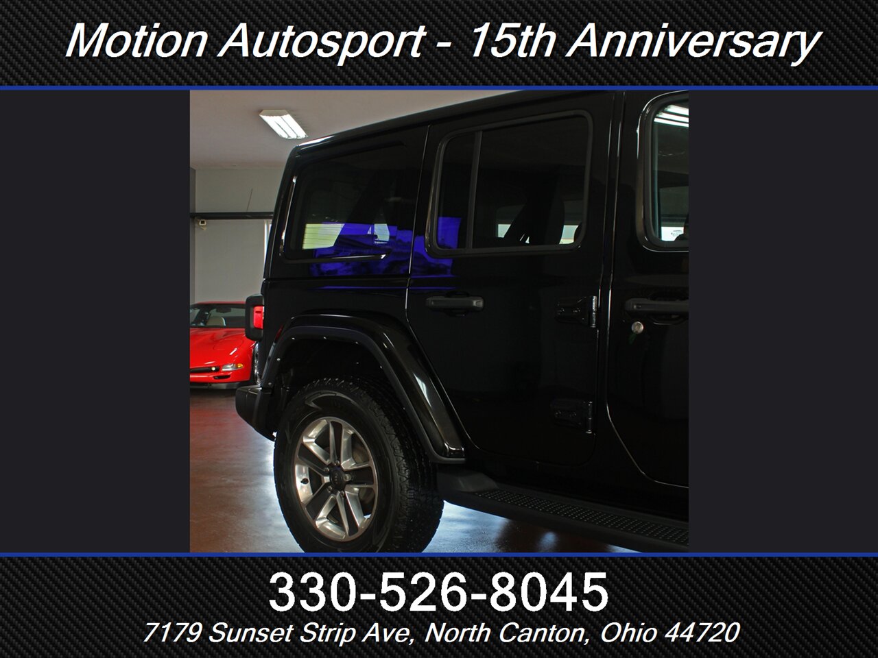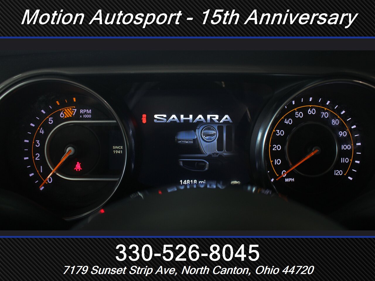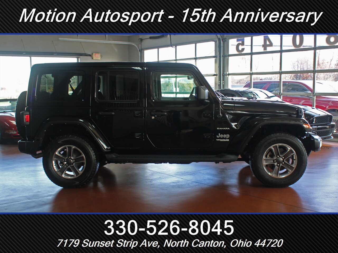 YOU WONT FIND THIS UNIT COME SPRING! Wow! Only 14,000 miles on this stunning, like new Sahara Unlimited! Fully loaded with the painted to match hard top, navigation, heated seats, fresh service and detail and an impeccable Carfax! About as new as you can get without the price tag! Ask us about our spectacular financing and extended service contracts. We take trades and ship vehicles nationwide. Visit www.motionautosport.com for 60 detailed photos. Call Jeff for more details at 330-526-8045 Internet price is a finance price only Visit our website for full pricing details