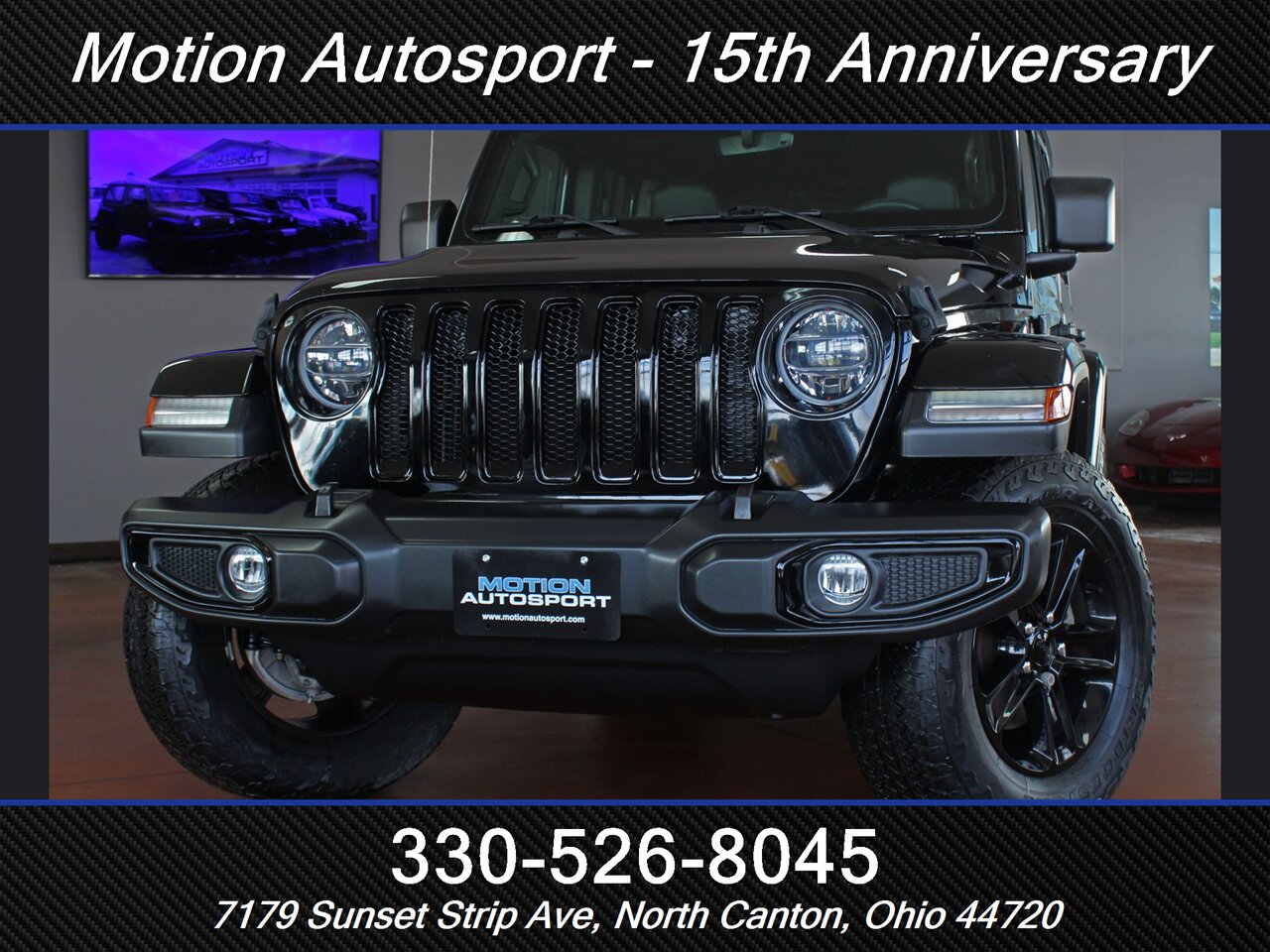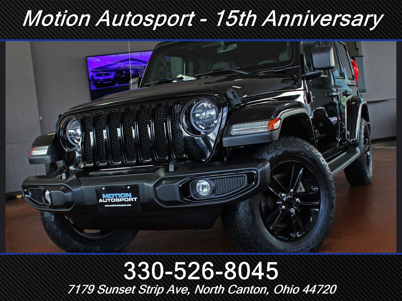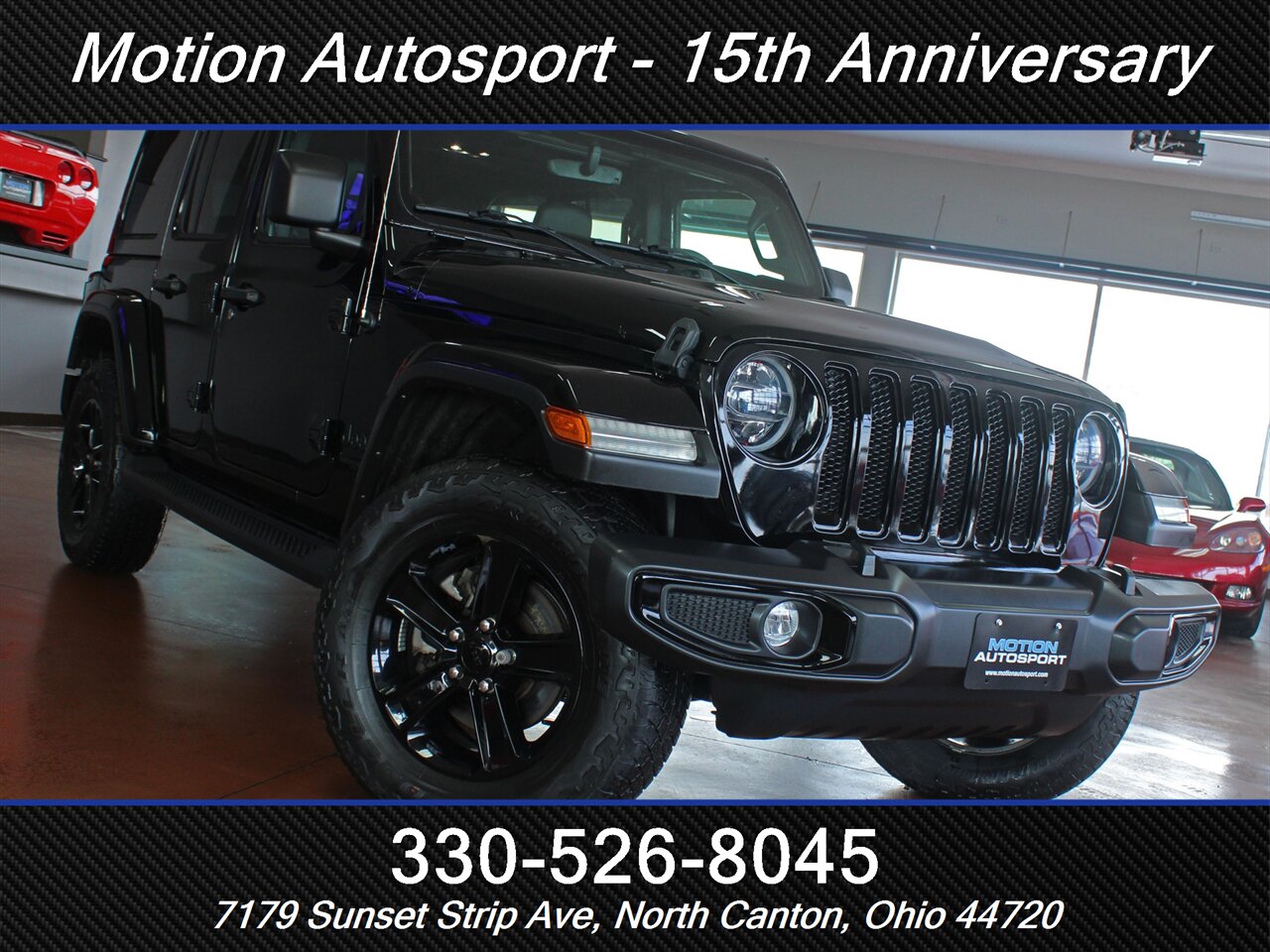 2022 Jeep Wrangler Unlimited Sahara Altitude Hard Top 4x4 — Black Clear Coat exterior, Black interior. Low miles, aggressively ready.