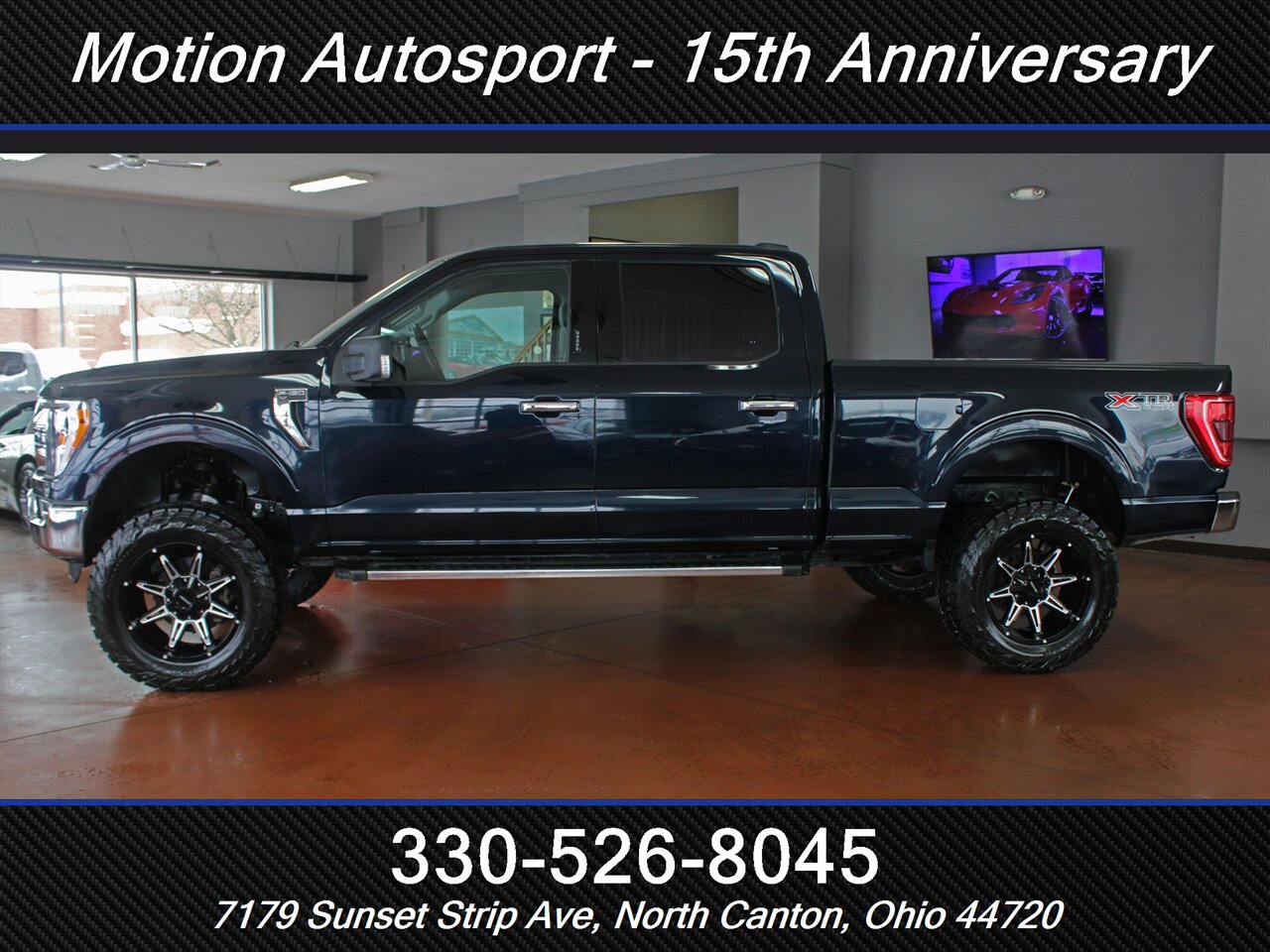 This is not a commuter truck — this is a statement. 2023 Ford F-150 XLT in Atlas Blue with a Medium Dark Slate interior, boosted by a custom lift and ready to dominate every road and trail. Under the hood sits the brutal EcoBoost 3.5L Twin-Turbo V6 delivering 400 hp and 500 ft-lbs of torque, paired to Ford’s smooth 10-speed automatic transmission and a true 4x4 system — power and control exactly where you need it. EPA-rated at 17 MPG city / 23 MPG highway.