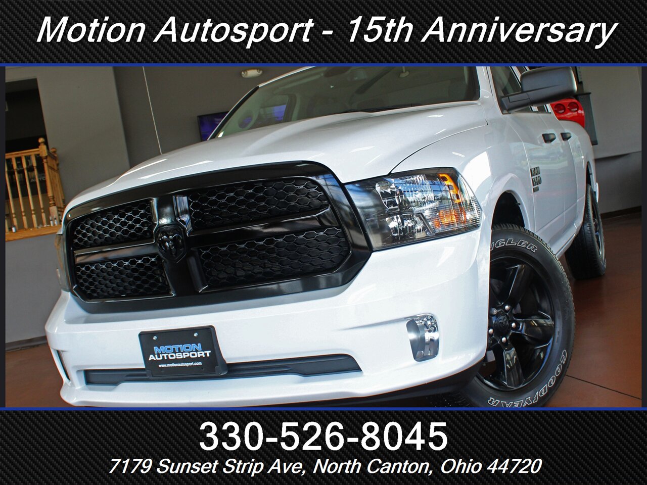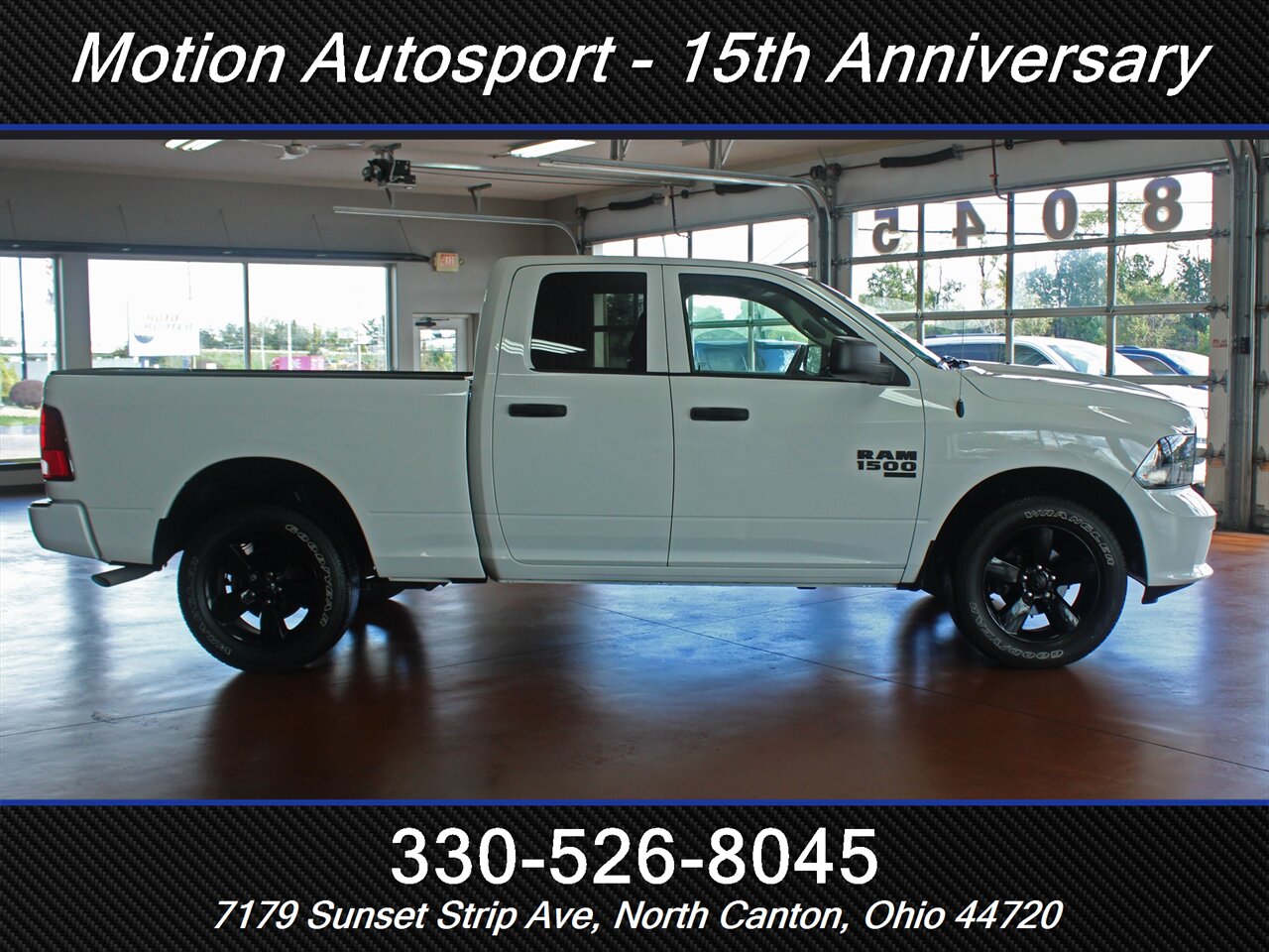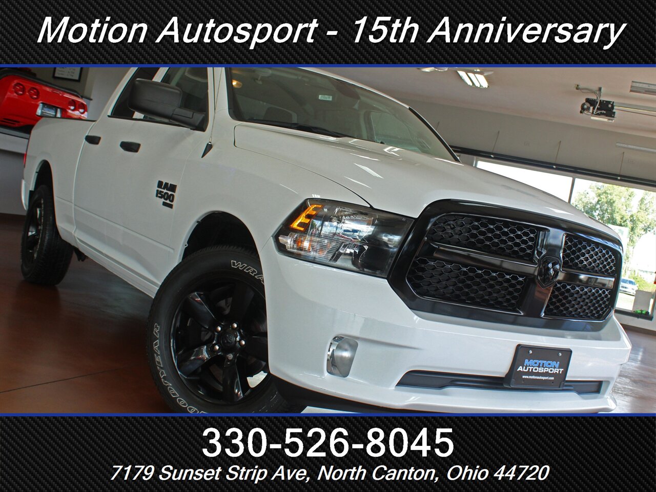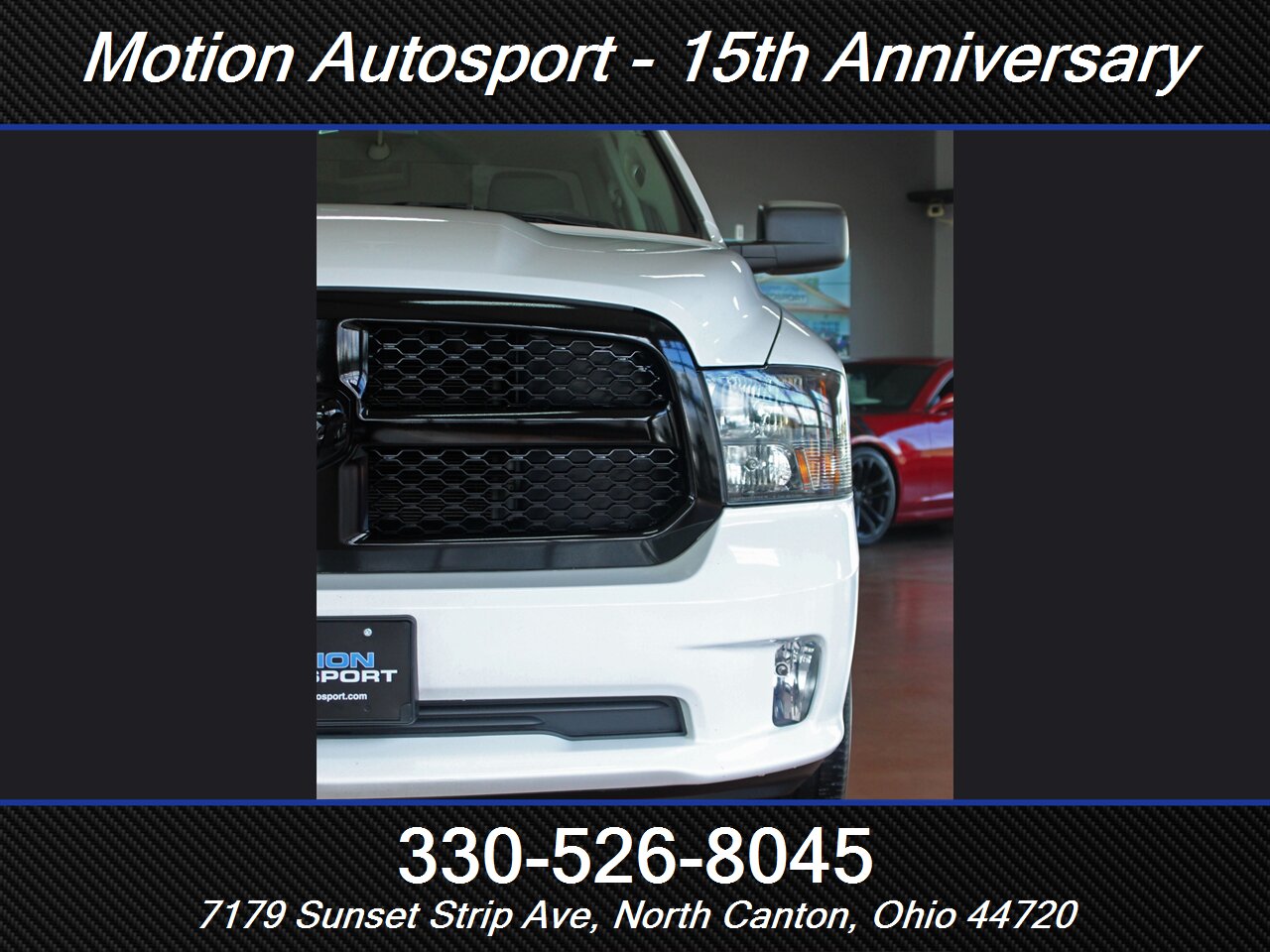 HUGE VALUE IN THIS 2023 MODEL! Loaded Ram Express with the Night Edition package, big touch screen audio, matte black 20s, fresh service and detail and an impeccable Carfax! We love this one! This is lots of late model truck for the money! Ask us about our spectacular financing and extended service contracts. We take trades and ship vehicles nationwide. Visit www.motionautosport.com for 60 detailed photos. Call Jeff for more details at 330-526-8045. Internet price is a finance price only. Visit our website for full pricing details